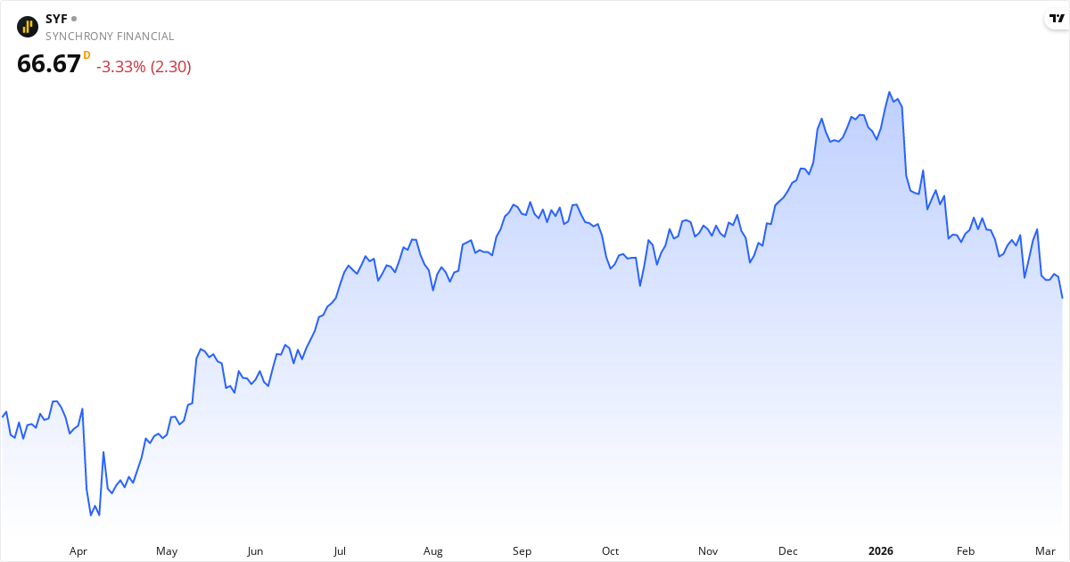 Synchrony Financial aktiekurs – Kursutveckling 2026. Uppdaterad 08. Mar 2026.