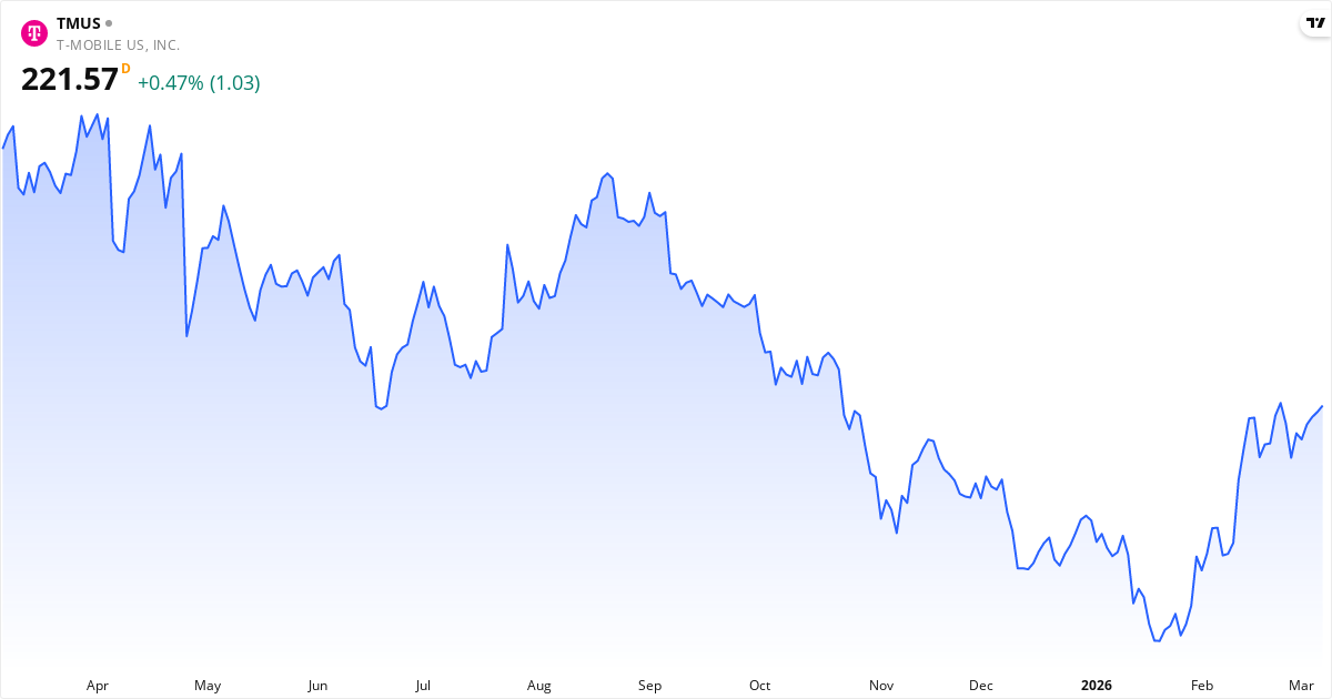 T-Mobile US aktiekurs – Kursutveckling 2026. Uppdaterad 08. Mar 2026.
