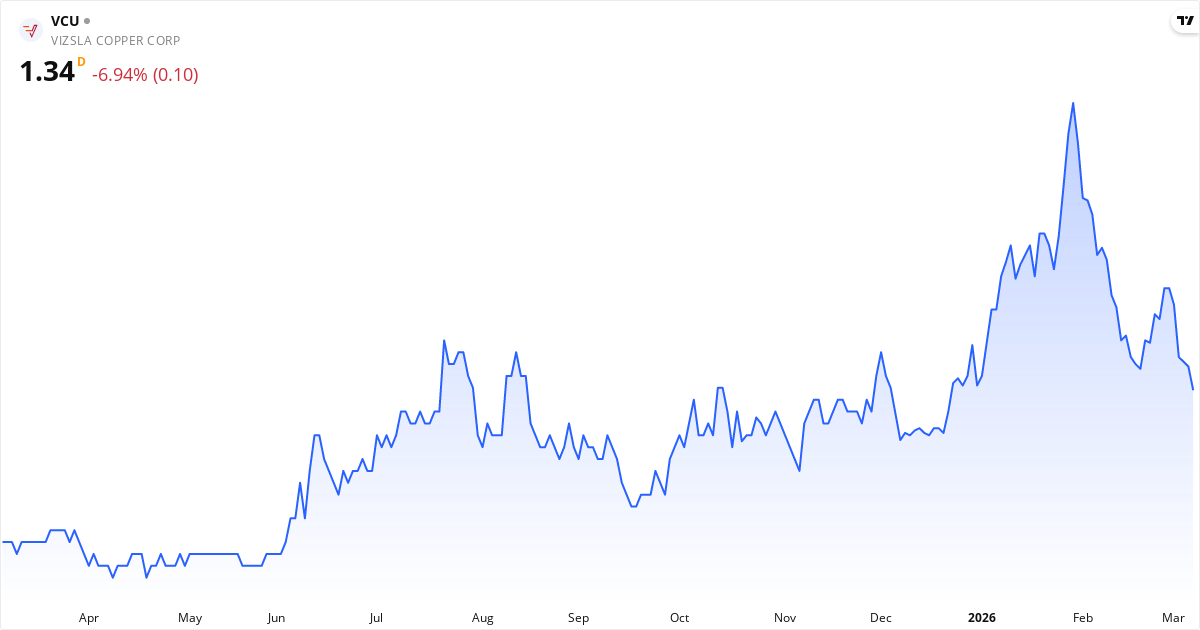 Vizsla Copper Corp., a mineral exploration company, engages in the acquisition, exploration, and development of mineral properties in Canada. The company explores copper, gold, and molybdenum deposits. Its flagship project is the Woodjam covering an area of 90,163 hectares located in Quesnel terrrane in South-Central British Columbia. Vizsla Copper Corp. is headquartered in Vancouver, Canada. Läs om företagetNyckeltal for Vizsla Copper