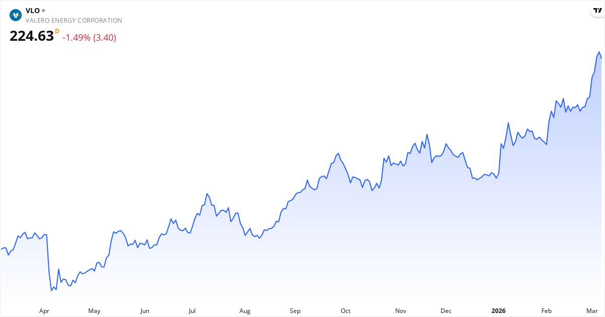 Valero Energy aktiekurs – Kursutveckling 2026. Uppdaterad 08. Mar 2026.