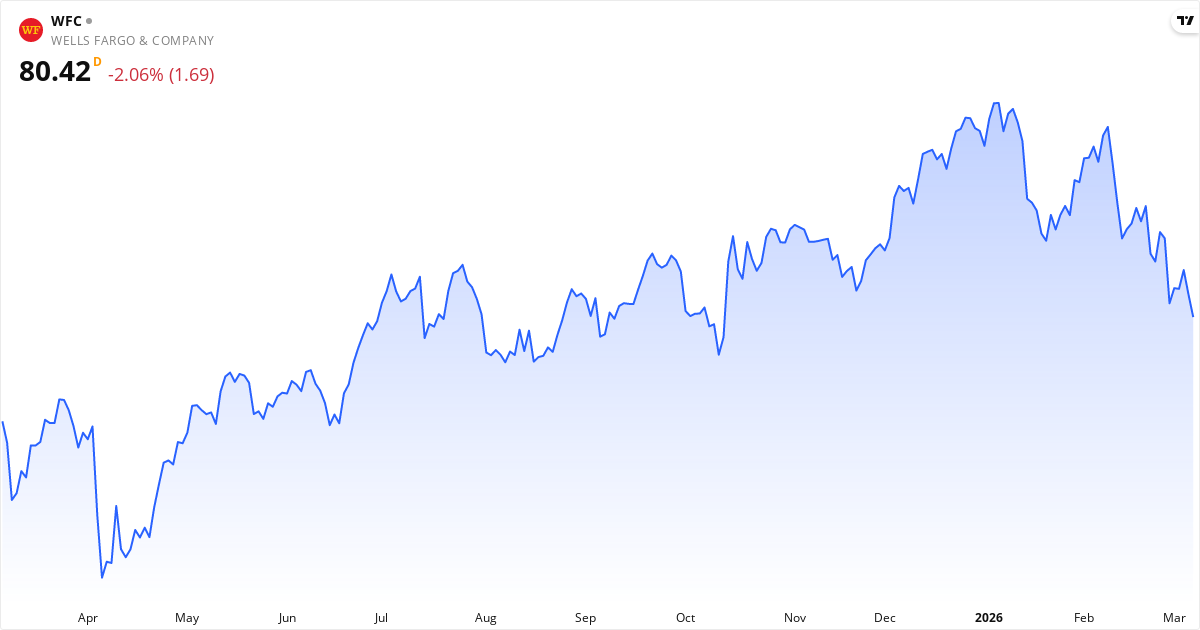 Wells Fargo & publicerar nästa rapport den 14. april 2026. Aktien handlas för närvarande till 80.42 $. Med ett P/E-tal på 13.1 kommer marknaden hålla utkik efter om intjäningen lever upp till förväntningarna. RSI är på 34.9, så rapporten kan forstarke den nuvarande tekniske tendens.