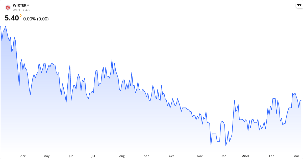 WirTek aktiekurs – Kursutveckling 2026. Uppdaterad 08. Mar 2026.