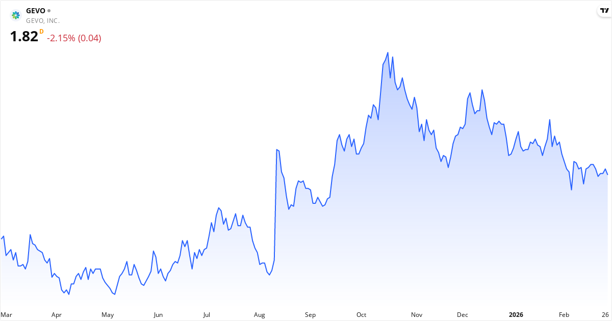 Gevo offentliggør næste regnskab den 05. marts 2026. Aktien handles i øjeblikket til 1.82 $.