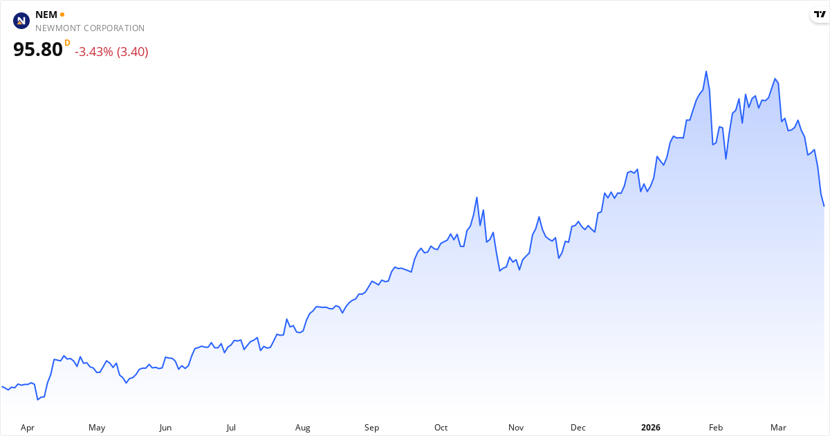 Newmont aktiekurs – Kursudvikling 2026. Opdateret 24. Mar 2026.