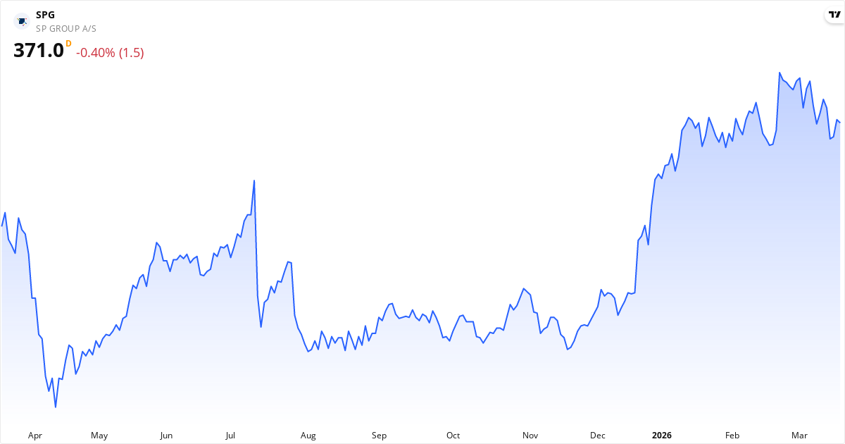 SP Group aktiekurs – Kursudvikling 2026. Opdateret 19. Mar 2026.