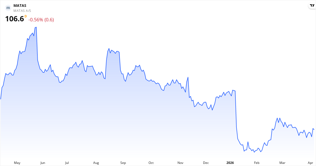 Matas er stabil i øjeblikket. De tekniske indikatorer viser: kursen ligger tæt på 20-dages gennemsnittet; MACD er negativ med faldende momentum (bearish signal); insidere har overvejende købt aktien på det seneste. Seneste nyheder der kan påvirke kursen: Matas har afsluttet sit aktietilbagekøbsprogram på op til 140 mio. kr (maks. 1,4 mio. aktier) i perioden 17 juni 2025... (07/04, Tilbagekøb af egne aktier); Matas rapporterer handler under sit aktietilbagekøbsprogram. I uge 13 2026 tilbagekøbte selskabet 22,500 aktier på Na... (30/03, Tilbagekøb af egne aktier); Matas rapporterer handler under aktietilbagekøbsprogrammet i uge 12. Selskabet har i perioden 16-20 marts 2026 tilbag... (23/03, Tilbagekøb af egne aktier). For den seneste kontekst, se vores tekniske analyse, insider-sektion og nyhedsoversigt ovenfor.
