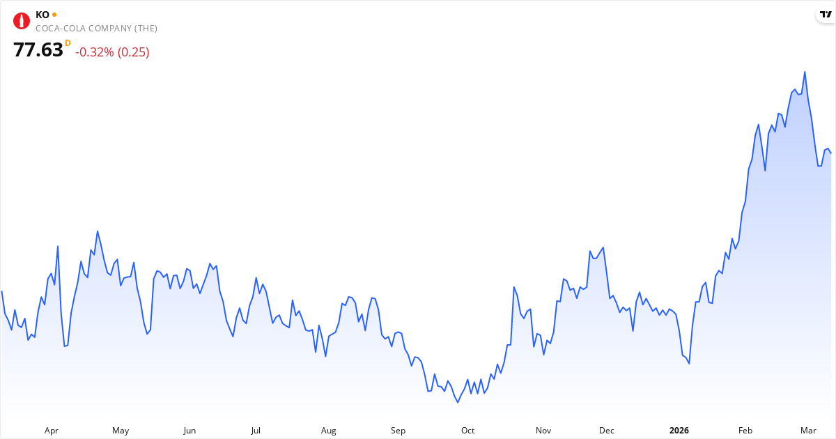 The Coca-Cola aktiekurs – Kursudvikling 2026. Opdateret 12. Mar 2026.