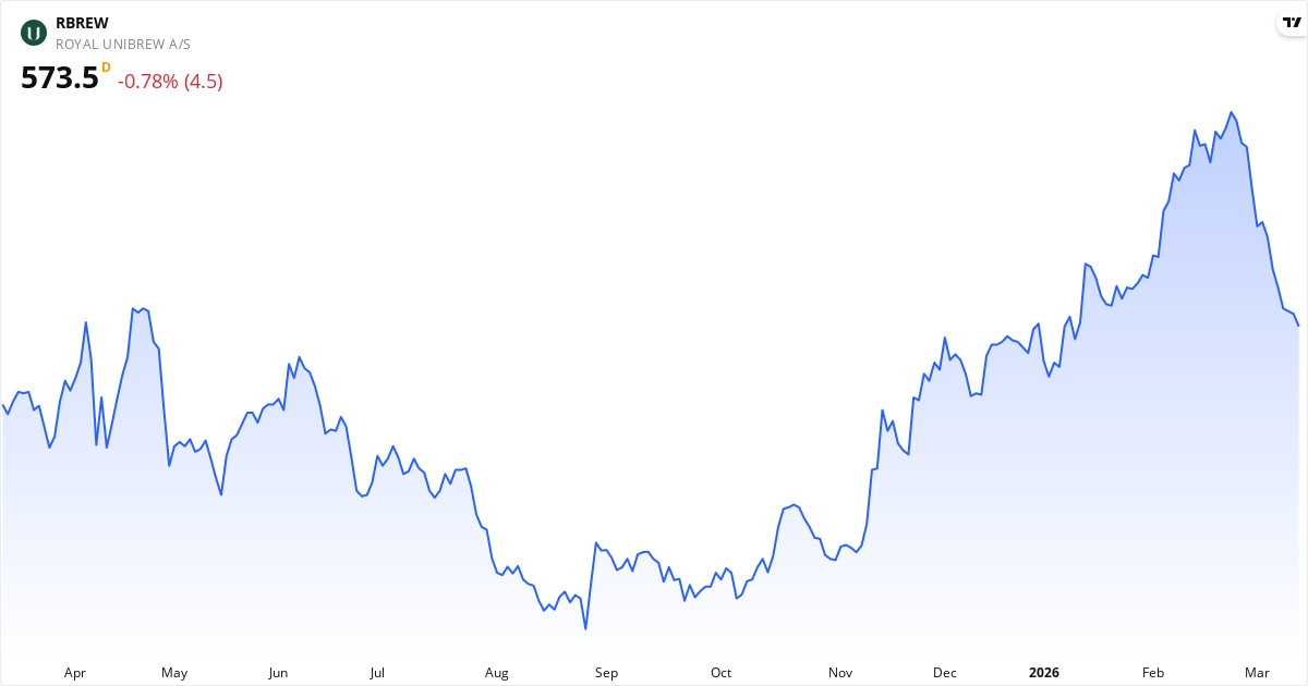 Royal Unibrew aktiekurs – Kursudvikling 2026. Opdateret 12. Mar 2026.