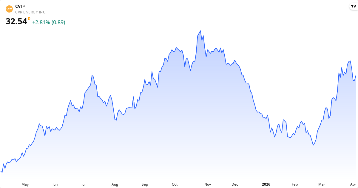 Ja, CVR Energy er en udbytteaktie med en udbytteprocent på 1.17%. Det seneste udbytte var 0.37 $ pr. aktie. Seneste x-dato (handlet uden udbytte) var 02/03-2026. Næste udbyttebetaling er fastsat til 19/08-2024.