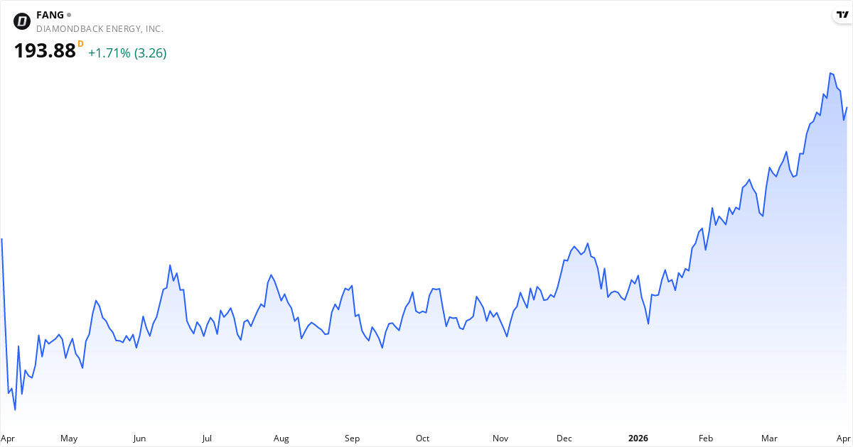 Diamondback Energy aktiekurs – Kursudvikling 2026. Opdateret 04. Apr 2026.