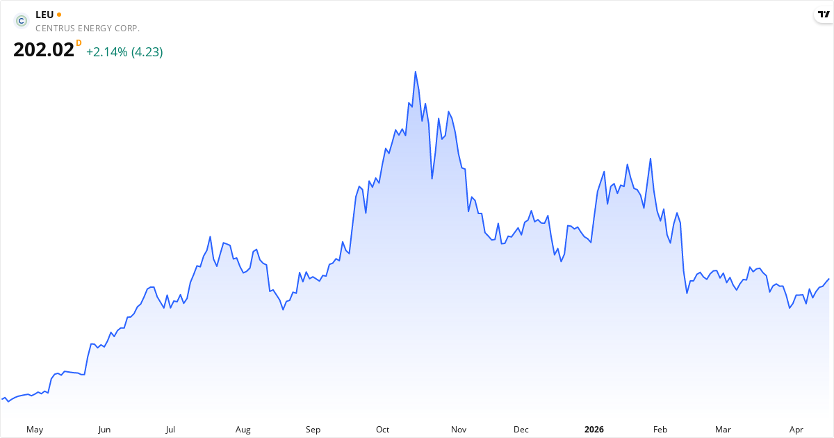 Centrus Energy aktiekurs – Kursudvikling 2026. Opdateret 17. Apr 2026.