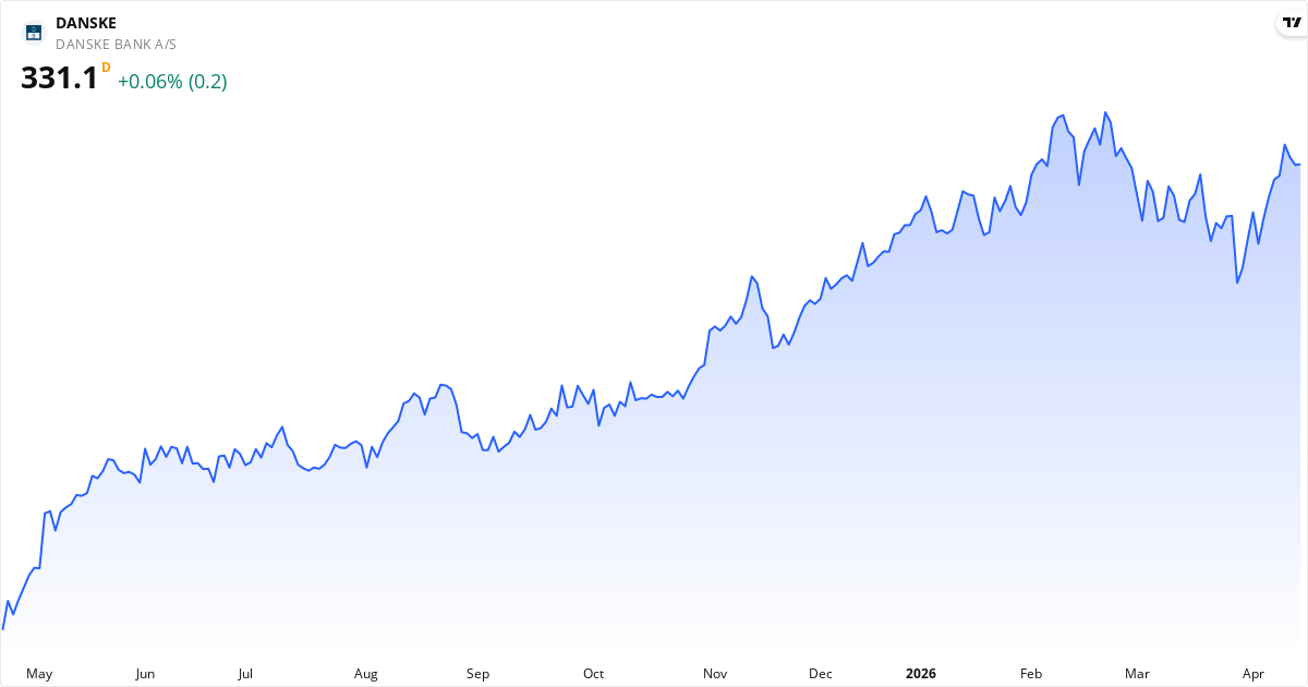 Danske Bank aktiekurs – Kursudvikling 2026. Opdateret 17. Apr 2026.