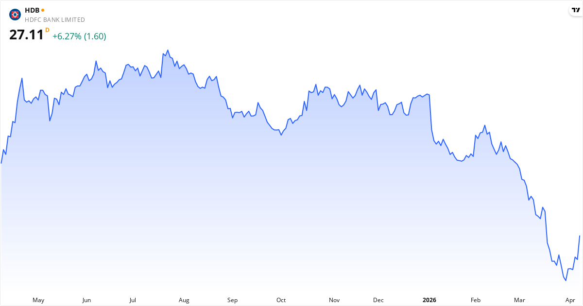 HDFC Bank offentliggør næste regnskab den 18. april 2026. Aktien handles i øjeblikket til 27.11 $. Med et P/E-tal på 17.6 vil markedet holde øje med om indtjeningen lever op til forventningerne.