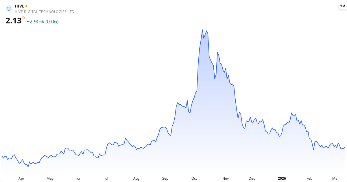 HIVE Blockchain Technologies Ltd. operates as a cryptocurrency mining company in Canada, Sweden, and Iceland. It engages in the mining and sale of digital currencies, including Ethereum, Ethereum Classic, and Bitcoin. The company was formerly known as Leeta Gold Corp. and changed its name to HIVE Blockchain Technologies Ltd. in September 2017. HIVE Blockchain Technologies Ltd. was incorporated in 1987 and is headquartered in Vancouver, Canada. Læs om virksomhedenNøgletal for HIVE Blockchain Technologies