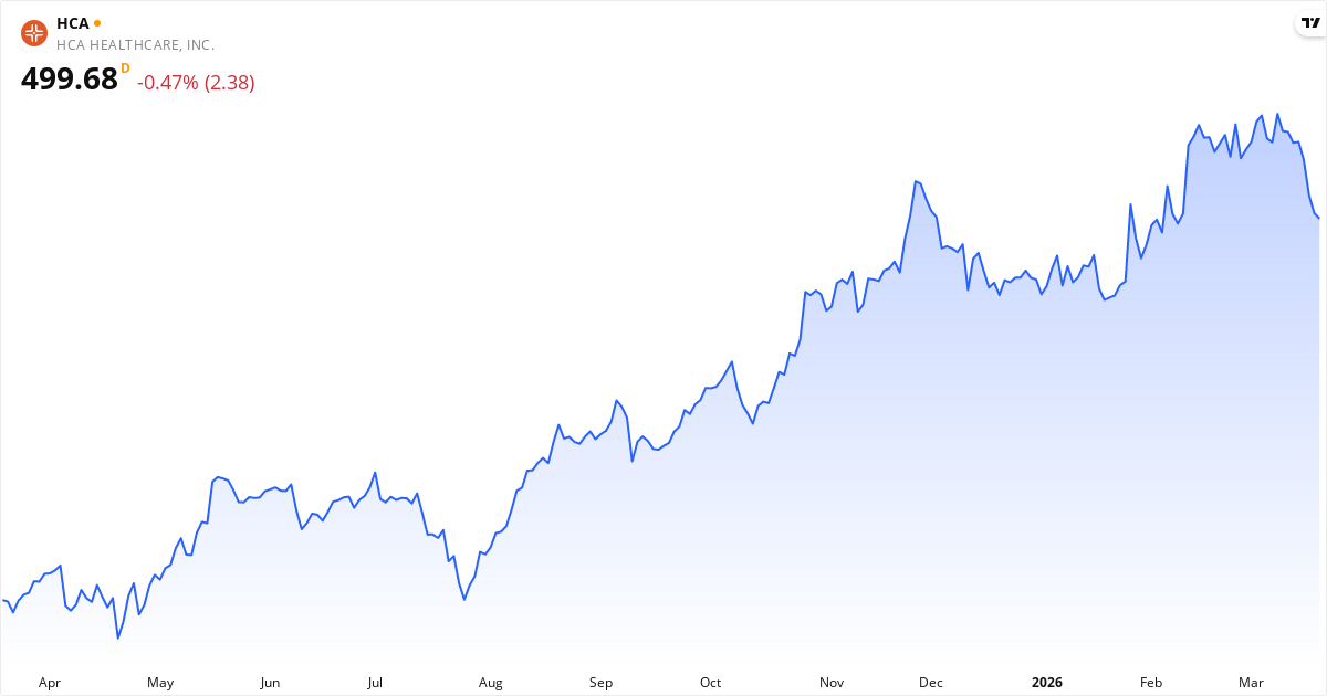 HCA Healthcare aktiekurs – Kursudvikling 2026. Opdateret 21. Mar 2026.