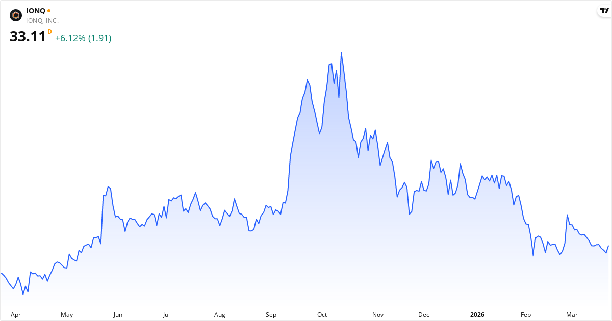 IonQ aktiekurs – Kursudvikling 2026. Opdateret 24. Mar 2026.