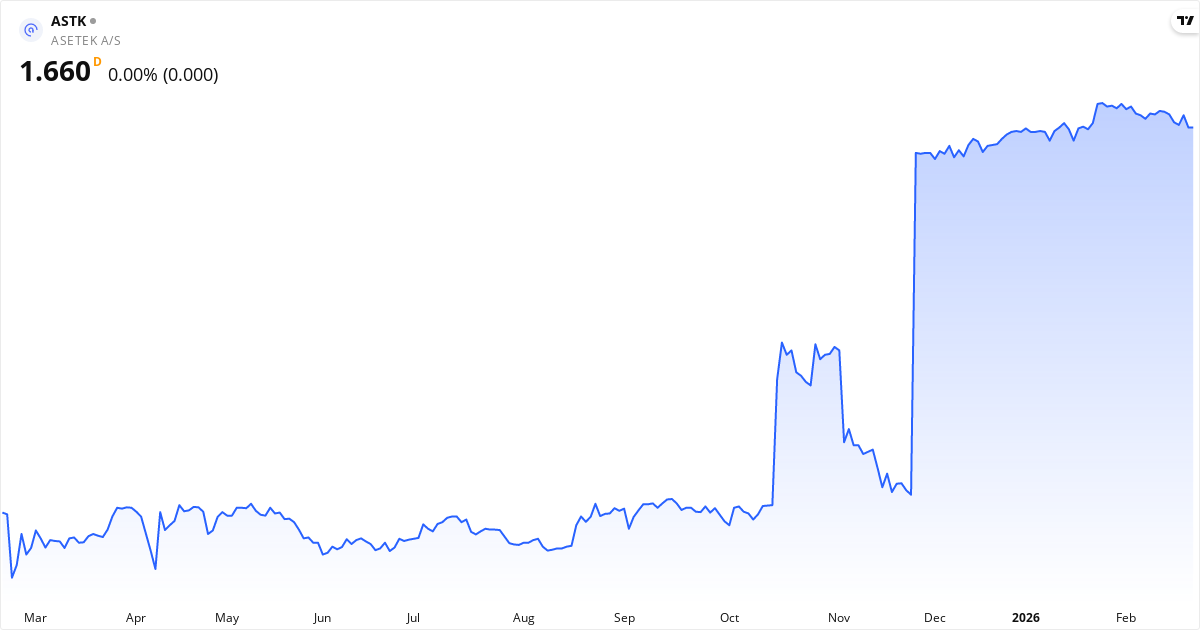 Nyheden: Nordic Compound Invest A/S kontrolleret af viceformanden Jakob Alsted Have har 20.-21. januar 2026 samlet købt 354.556 Asetek aktier i åbent marked til gennemsnitskurs DKK 1,6557 pr. aktie. Samlet købsbeløb ca. 587.038 kr. Markedshandel og ikke vesting, hvilket signalerer tillid fra ledelsen. (dato: 2026-01-23 11:20)