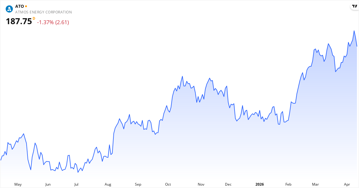 Atmos Energy aktiekurs – Kursudvikling 2026. Opdateret 15. Apr 2026.