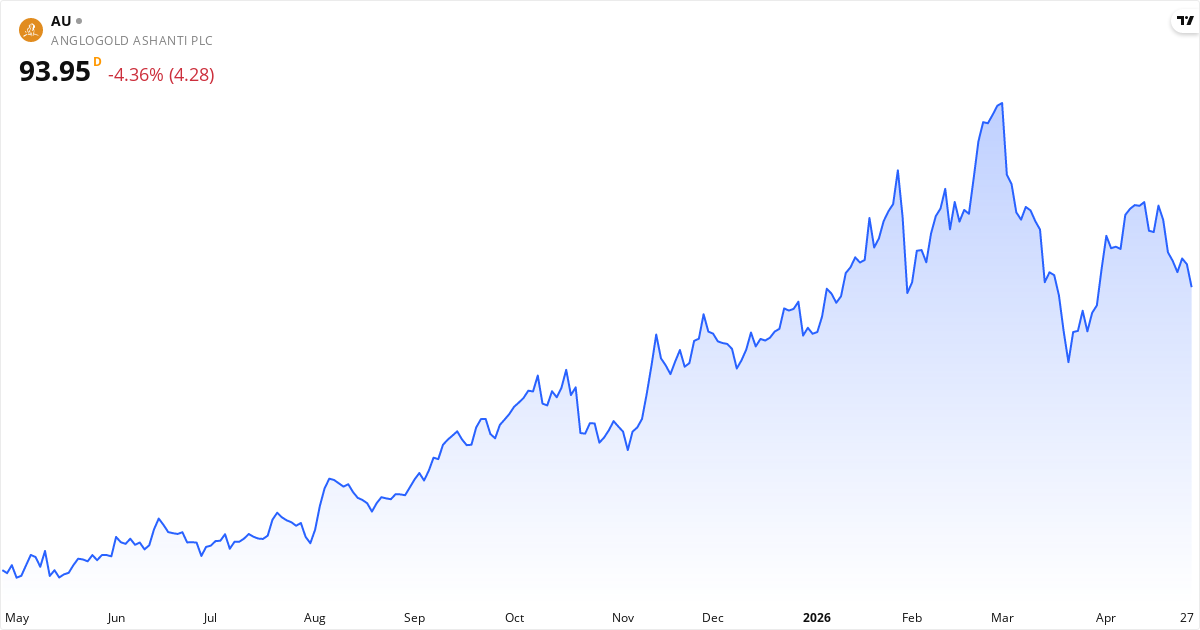 AngloGold Ashanti offentliggør næste regnskab den 08. maj 2026. Aktien handles i øjeblikket til 90.51 $. Med et P/E-tal på 19.0 vil markedet holde øje med om indtjeningen lever op til forventningerne.