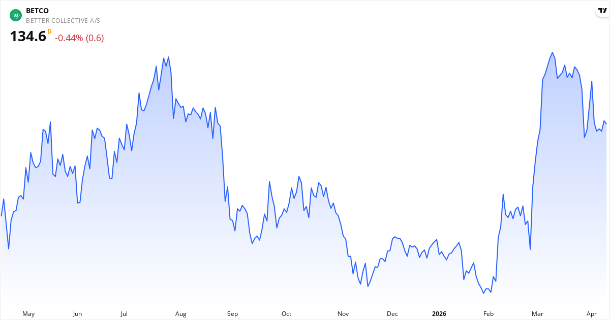 Better Collective offentliggør næste regnskab den 20. maj 2026. Aktien handles i øjeblikket til 133.80 Kr.. Med et P/E-tal på 31.8 vil markedet holde øje med om indtjeningen lever op til forventningerne.
