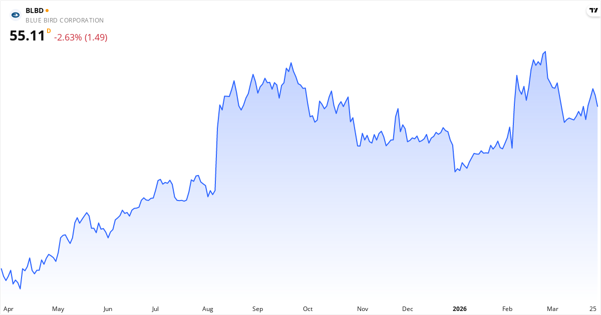 Blue Bird aktiekurs – Kursudvikling 2026. Opdateret 30. Mar 2026.