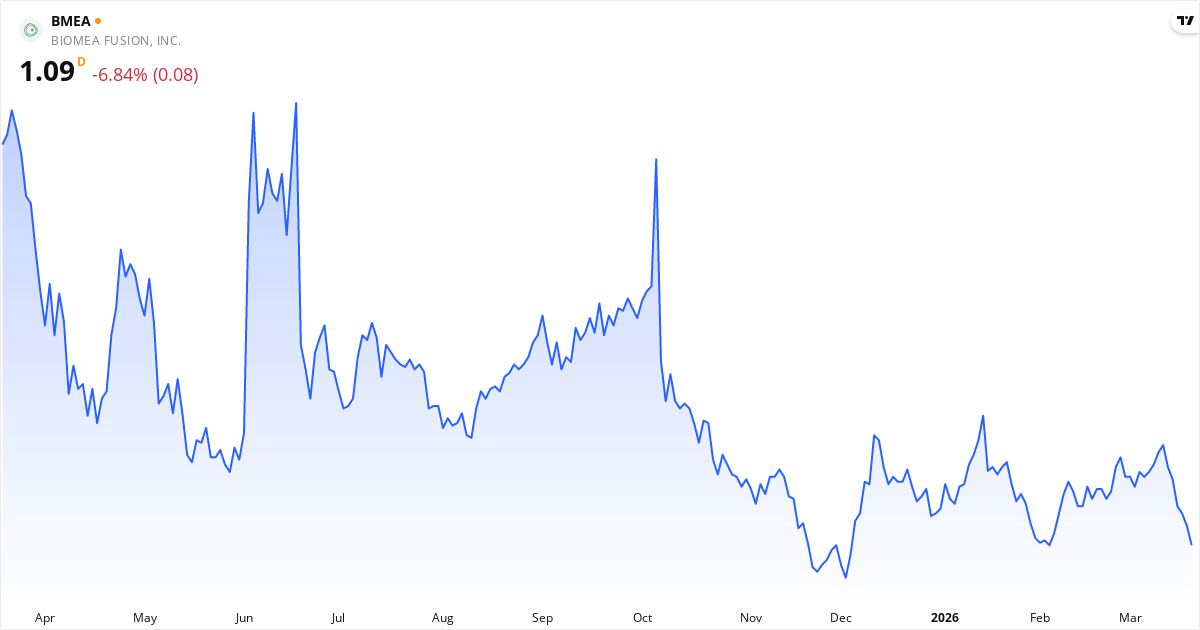 Biomea Fusion aktiekurs – Kursudvikling 2026. Opdateret 20. Mar 2026.