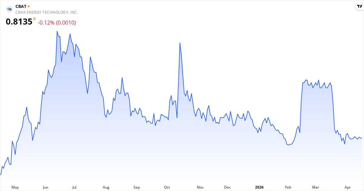 Death Cross: 50-dages gennemsnittet (0.91) ligger under 200-dages (0.93), hvilket er et klassisk bearish signal for CBAK Energy Technology, Inc.