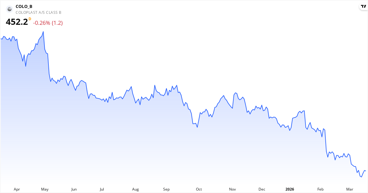 Coloplast falder i øjeblikket. De tekniske indikatorer viser: kursen ligger 2.6% under 20-dages gennemsnittet; insidere har overvejende købt aktien på det seneste. Seneste nyheder der kan påvirke kursen: CFO Anders Lonning-Skovgaard har købt 4.362 B-aktier i markedet på Nasdaq Copenhagen den 10. marts 2026 til VWAP 458,... (12/03, Insider Køb); Bestyrelsesformand Jette Nygaard-Andersen har købt 2.000 B-aktier til kurs 447 fordelt på 330 og 1.670 stk. den 11-03... (11/03, Insider Køb); Coloplast tildeler aktieoptioner som led i incitamentsprogram. 33.897 til konstitueret CEO Lars Rasmussen og 43.134 t... (10/03, Øvrige ændringer). For den seneste kontekst, se vores tekniske analyse, insider-sektion og nyhedsoversigt ovenfor.