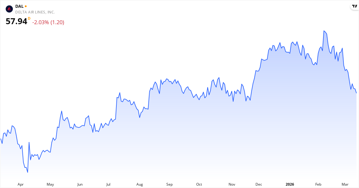 Delta Air Lines aktiekurs – Kursudvikling 2026. Opdateret 13. Mar 2026.