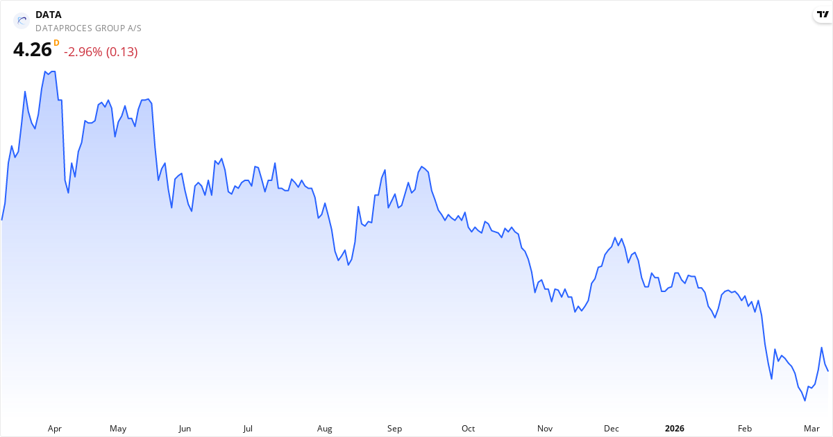 Dataproces Group aktiekurs – Kursudvikling 2026. Opdateret 10. Mar 2026.