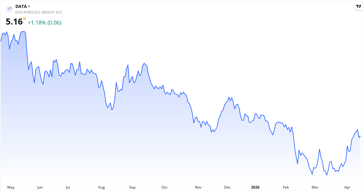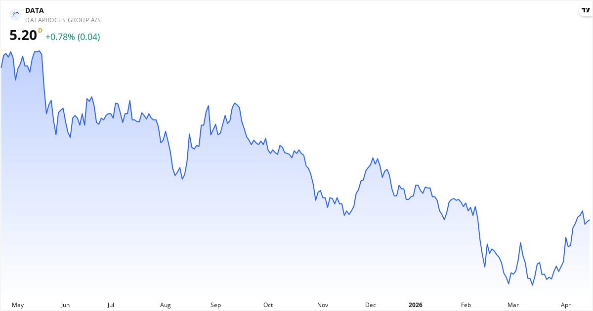 Dataproces Group aktiekurs – Kursudvikling 2026. Opdateret 20. Apr 2026.