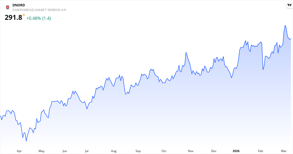 D/S Norden stiger i øjeblikket. De tekniske indikatorer viser: kursen ligger 2.6% over 20-dages gennemsnittet; MACD er positiv med stigende momentum (bullish signal); insidere har overvejende købt aktien på det seneste. Seneste nyheder der kan påvirke kursen: Nærtstående A/S Motortramp har solgt 2.688 NORDEN-aktier den 9-03-2026 på Nasdaq Copenhagen til kurs 287,19, samlet c... (10/03, Insider Salg); A/S Motortramp, nærtstående til ledelsen, har solgt 2.389 NORDEN aktier til DKK 291,35 den 2026-03-06 på Nasdaq Copen... (09/03, Insider Salg); A/S Motortramp, der er nærtstående til ledelsen, har solgt 2.389 NORDEN-aktier til kurs 296,58 DKK pr. aktie for saml... (06/03, Insider Salg). For den seneste kontekst, se vores tekniske analyse, insider-sektion og nyhedsoversigt ovenfor.