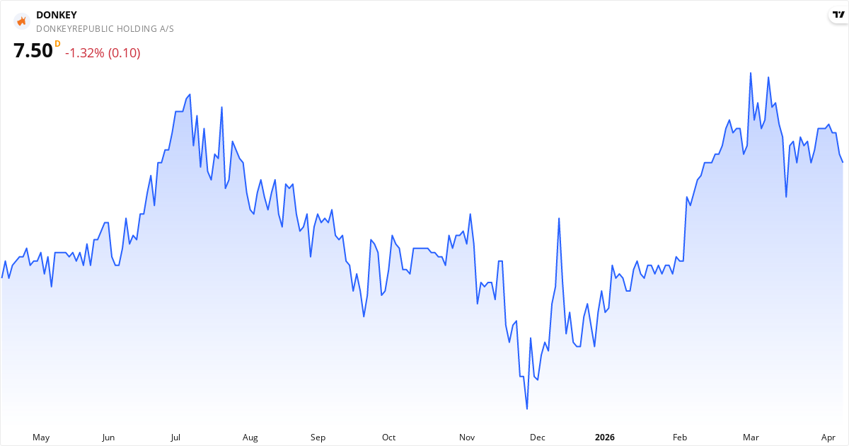 Donkeyrepublic Holding AS falder i øjeblikket. De tekniske indikatorer viser: kursen ligger 3.5% under 20-dages gennemsnittet; insidere har overvejende købt aktien på det seneste. Seneste nyheder der kan påvirke kursen: Generalforsamlingen tog årsrapporten for 2025 til efterretning og godkendte resultatdisponeringen. Bestyrelsen blev g... (08/04, Tilbagekøb af egne aktier); Rolf Bladt genopstiller ikke til bestyrelsen efter at have frasolgt hele sin aktiebeholdning. På generalforsamlingen ... (07/04, Øvrige ændringer); Bladt Invest ApS, relateret til bestyrelsesmedlem Rolf Bladt, har solgt 5.793.774 aktier i DonkeyRepublic Holding A/S... (31/03, Insider Salg). For den seneste kontekst, se vores tekniske analyse, insider-sektion og nyhedsoversigt ovenfor.