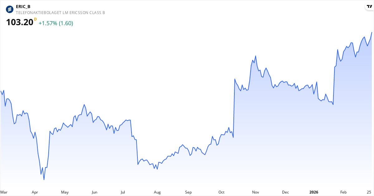 eric-b.st, eller Ericsson, laver kommunikationsinfrastruktur og software til telesektoren. De tjener hovedsageligt penge på fire områder. Networks-delen sælger radioadgangsløsninger, altså hardware og software, som mobilnetværk bruger. Derudover driver Digital Services forretningen, som leverer software til kundesystemer og netværkskerner. Ericsson har også en stor Managed Services afdeling, der styrer og optimerer teleselskabers netværk. De blev grundlagt i 1876 og har i dag over 100.000 ansatte globalt. eric-b.st er kendt for at levere både 4G og 5G teknologi til operatører verden over. Læs om virksomhedenNøgletal for Telefonaktiebolaget LM Ericsson