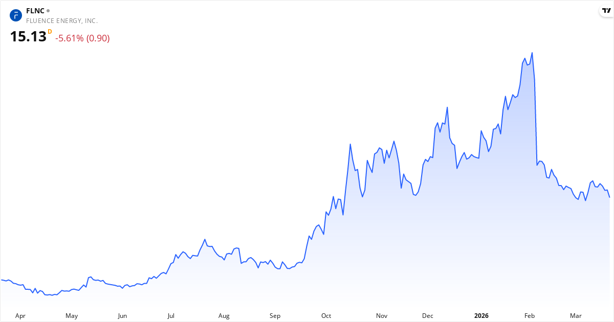 Fluence Energy aktiekurs – Kursudvikling 2026. Opdateret 22. Mar 2026.
