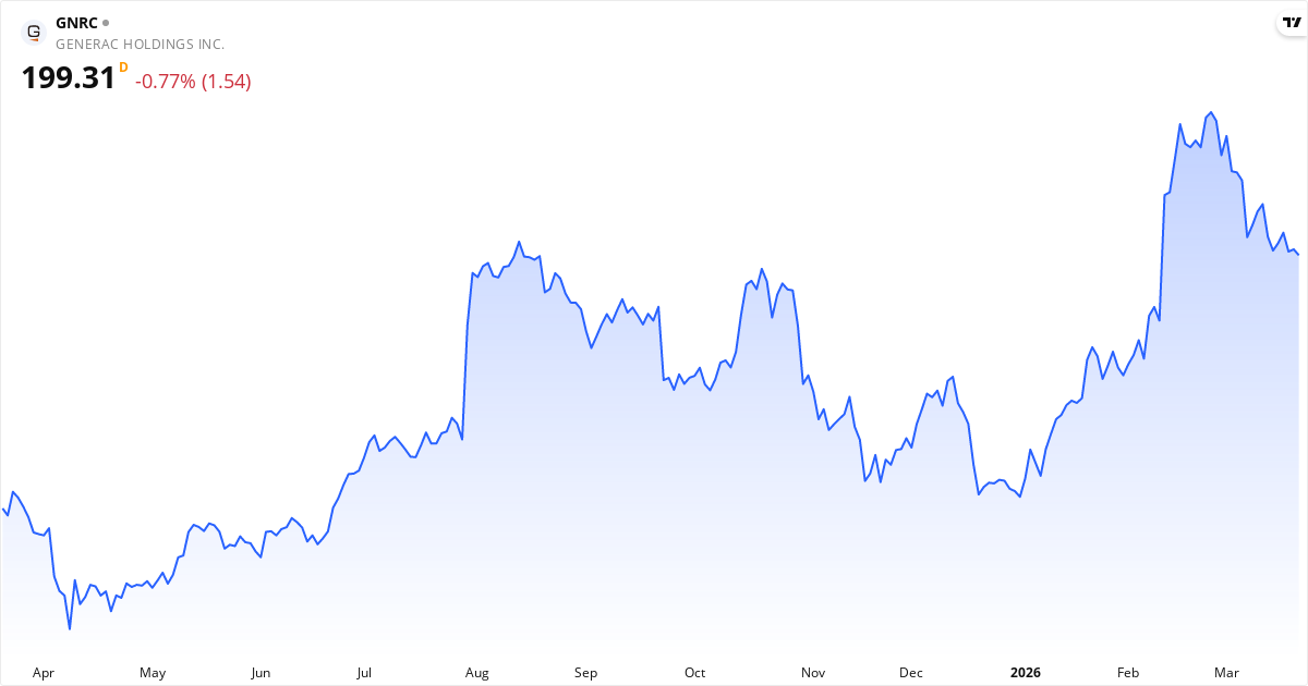 Generac aktiekurs – Kursudvikling 2026. Opdateret 22. Mar 2026.