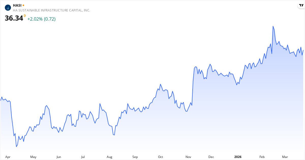 Hannon Armstrong Sustainable Infrastructure Capital aktiekurs – Kursudvikling 2026. Opdateret 24. Mar 2026.