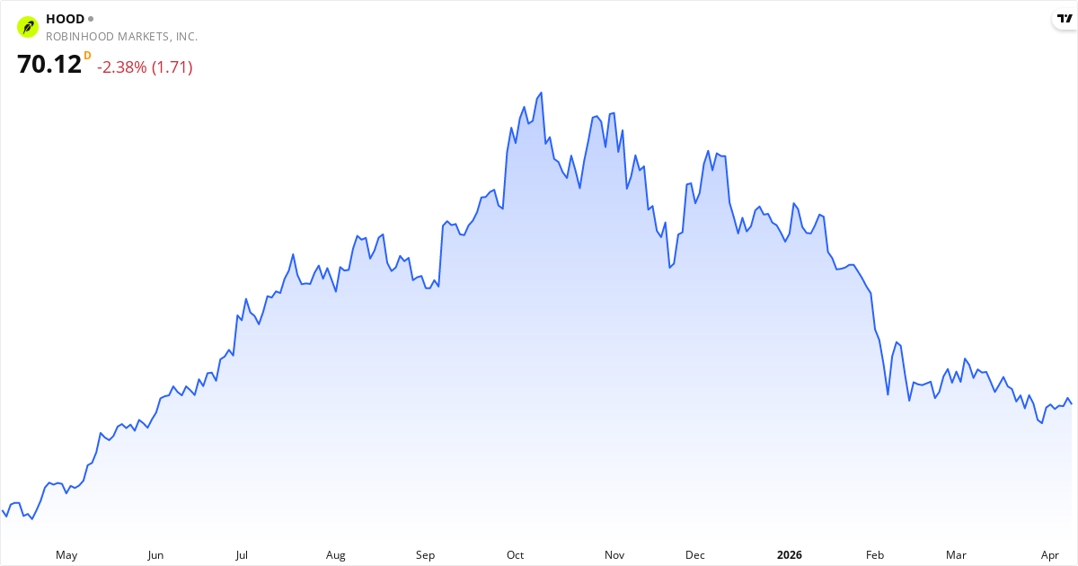 Robinhood Markets offentliggør næste regnskab den 29. april 2026. Aktien handles i øjeblikket til 70.12 $. Med et P/E-tal på 35.0 vil markedet holde øje med om indtjeningen lever op til forventningerne.