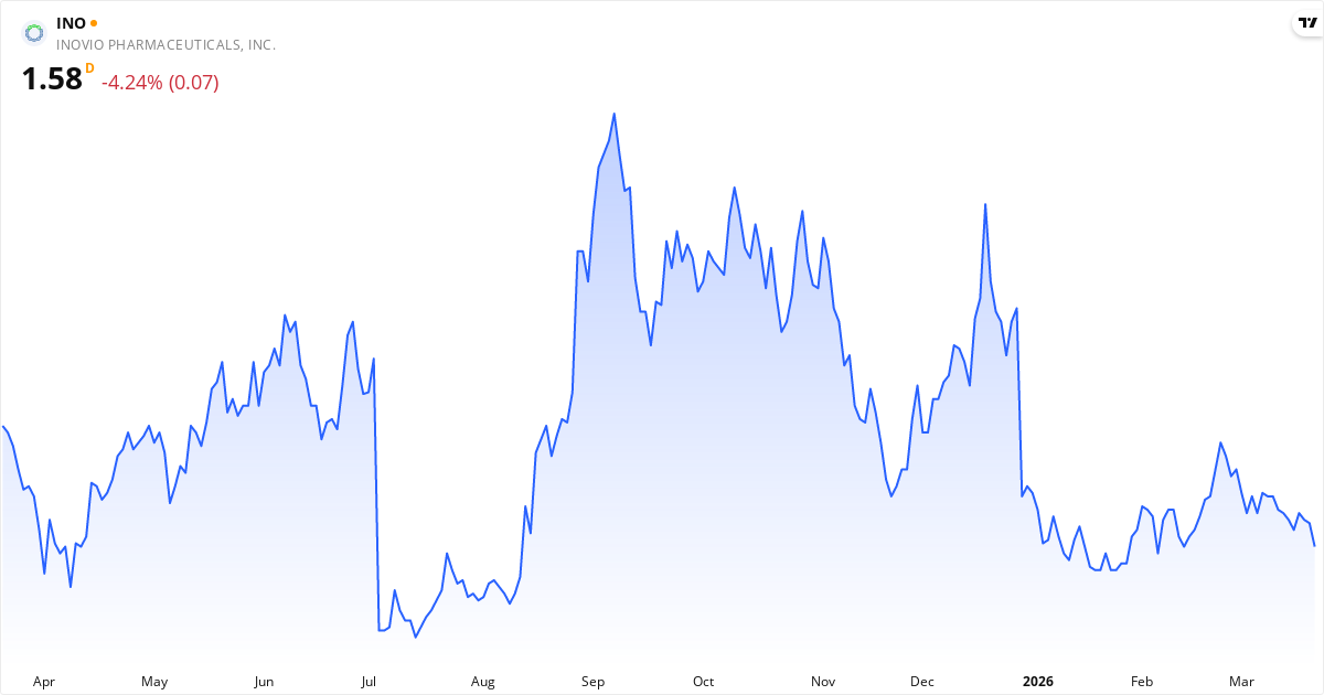 Inovio Pharmaceuticals aktiekurs – Kursudvikling 2026. Opdateret 24. Mar 2026.