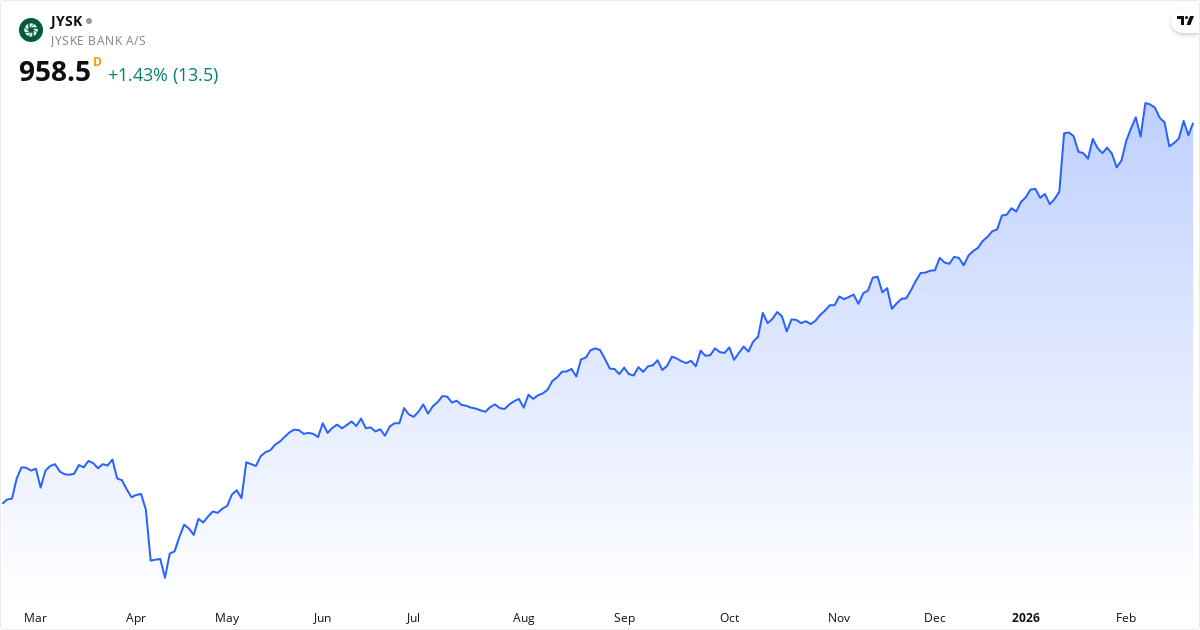 Nyheden: Bestyrelsesmedlem Ingjerd Blekeli Spiten har den 5. februar 2026 købt 530 Jyske Bank aktier til kurs 950,5 på handelsplads XDNB. Den samlede købspris er 503.765 kr. Handlen er indberettet som en ordinær markedstransaktion og indikerer ledelsens tillid til selskabet. Beløbet er væsentligt, hvilket typisk er et positivt signal for aktien. (dato: 2026-02-05 15:11)