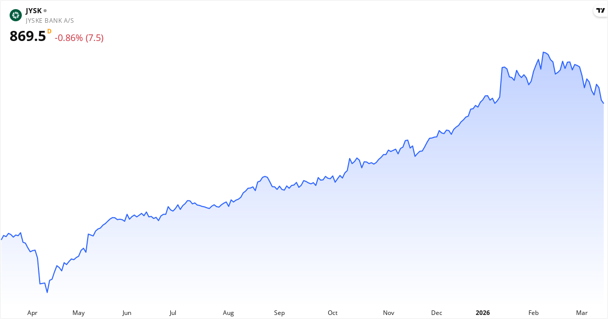 Jyske Bank aktiekurs – Kursudvikling 2026. Opdateret 14. Mar 2026.