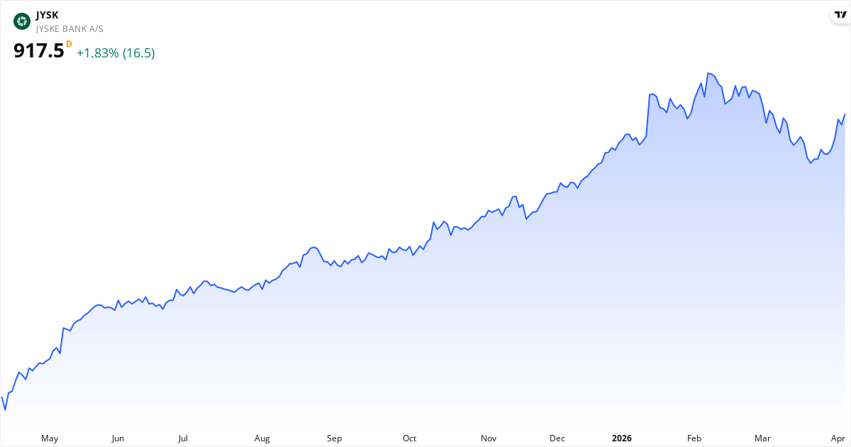 Jyske Bank offentliggør næste regnskab den 06. maj 2026. Aktien handles i øjeblikket til 914.50 Kr.. Med et P/E-tal på 10.5 vil markedet holde øje med om indtjeningen lever op til forventningerne.