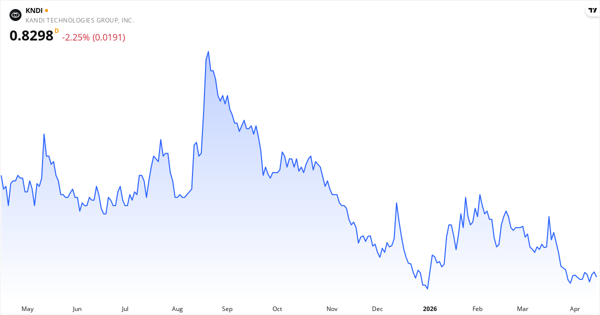 Death Cross: 50-dages gennemsnittet (0.95) ligger under 200-dages (1.10), hvilket er et klassisk bearish signal for Kandi Technologies Group, Inc.