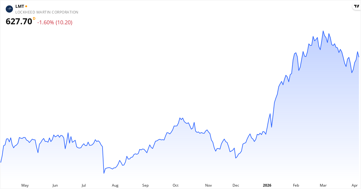 Lockheed Martin aktiekurs – Kursudvikling 2026. Opdateret 09. Apr 2026.