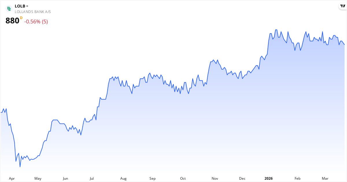 Lollands Bank aktiekurs – Kursudvikling 2026. Opdateret 23. Mar 2026.