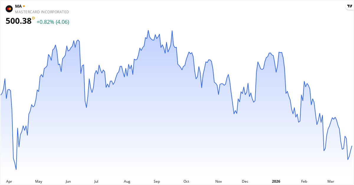 Mastercard Incorporated aktiekurs – Kursudvikling 2026. Opdateret 24. Mar 2026.