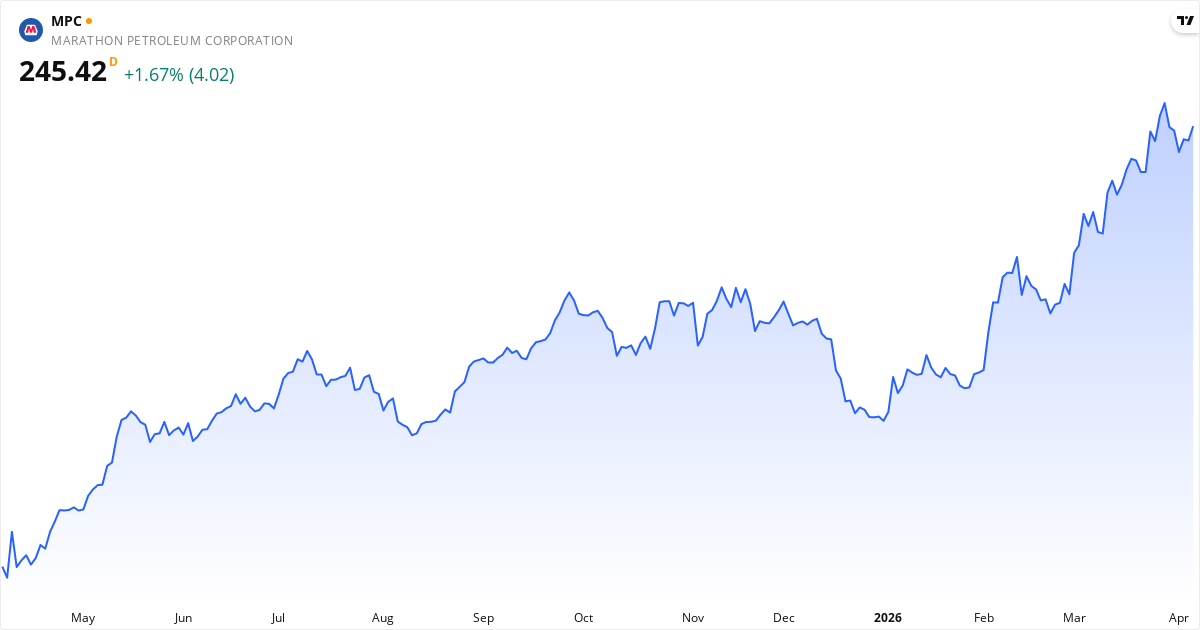 Marathon Petroleum Corporation, eller mpc.us, driver en integreret energiforretning primært i USA. De tjener penge på to hovedområder: raffinering og markedsføring samt midtstrøm. Raffineringsdelen laver råolie om til færdige produkter på deres anlæg langs Golfkysten og Vestkysten. Her producerer de transportbrændstoffer som benzin og diesel, men også specialprodukter som aromater og asfalt.