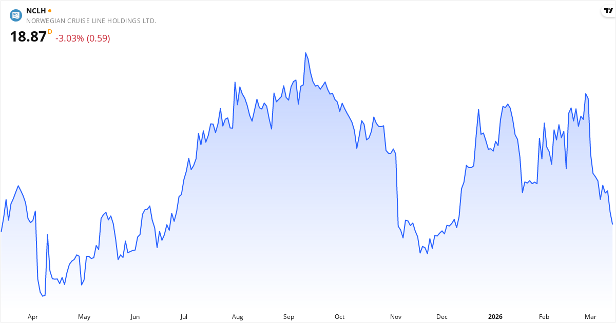 Norwegian Cruise Line aktiekurs – Kursudvikling 2026. Opdateret 17. Mar 2026.