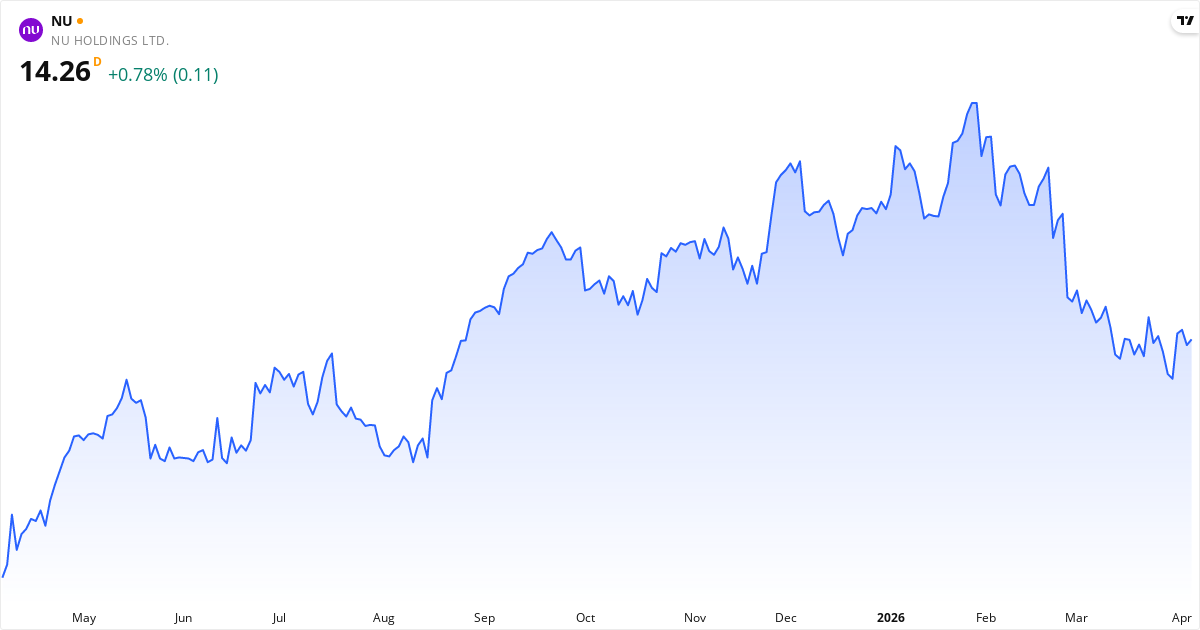 Nu Holdings Ltd. provides digital banking platform and digital financial services in Brazil, Mexico, Colombia, and internationally. It offers Nu credit and debit cards; Ultraviolet credit and debit cards; and mobile payment solutions for NuAccount customers to make and receive transfers, pay bills, and make everyday purchases through their mobile phones. The company provides savings solutions, such as Nu Personal Accounts, a digital account solution that supports all personal finance activities, from daily purchases and money transfers to savings; and Nu business accounts designed specifically for entrepreneur customers and their businesses. In addition, it offers NuCrypto, a solution for buying and selling cryptocurrencies through the Nu app; NuInvest, an investment product that provides equity, fixed-income, options, and ETF products, as well as multimarket funds with curated asset allocations based on the customer's risk profile and financial position; personal unsecured loans; in-app "buy now pay later' solution for Nu card customers to pay credit and debit purchases, and banking payment slips over time in up to twelve installments; and NuInsurance protecting solutions to help its customers secure life insurance and funeral benefits. The company was founded in 2013 and is headquartered in Sao Paulo, Brazil. Læs om virksomheden