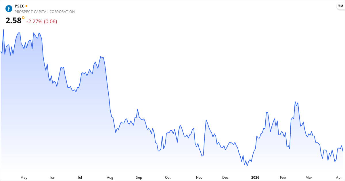 Prospect Capital aktiekurs – Kursudvikling 2026. Opdateret 08. Apr 2026.
